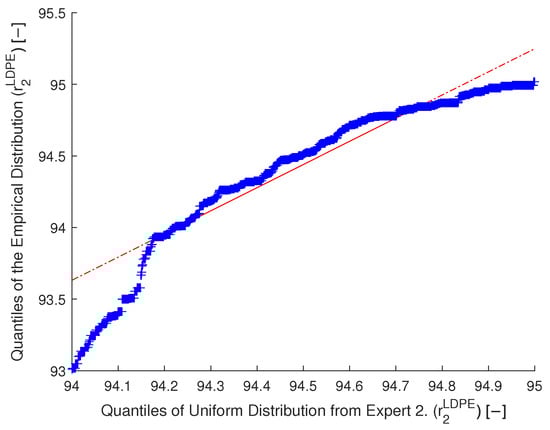 Firstly, the two density functions to compare should be discretized by a Δ x i value, and the density functions should be evaluated at those points. Then, the Jaccard index of the two resulting datasets can be calculated [28]. Thereby, the goodness values of the expert judgments: