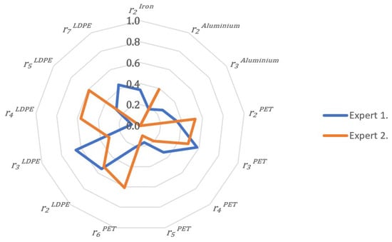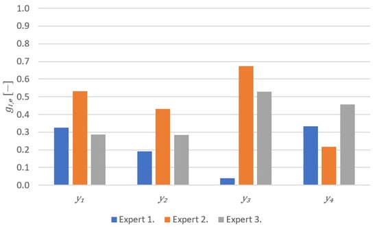 Applying the technique to compare the resulting empirical probability densities with the original ones based on experts, expert assessments can be characterized by the goodness values calculated ( g i , e ), thus being evaluated.