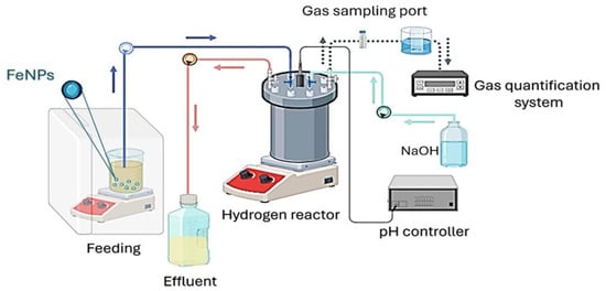 Research on the use of NPs to enhance fermentative H2 production has been predominantly limited to batch operations [4,18,19]. This has impeded a comprehensive investigation into the influence of NPs in continuous reactor systems. In this context, the research conducted by Tawfik et al. [16] is noteworthy because it was the first study to evaluate the role of Fe3O4 NPs in improving the continuous production of H2. Such a study evaluated the performance of two anaerobic baffled reactors using alkaline hydrolysates of RS. The inclusion of magnetite NPs resulted in a significant improvement in the H2 production yield. For example, the maximum H2 yield reached 21.4 ± 3.2 mL/g COD removed for reactor 1 and 60.6 ± 5.7 mL/g COD removed for reactor 2, both at an organic loading rate (OLR) of 1.6 g COD/L-d. Despite the promising results, the study was conducted at a relatively low OLR, with a maximum of 4.8 g COD/L-d, which resulted in a modest H₂ productivity of approximately 200 mL H₂/L-d. Furthermore, the effect of varying nanoparticle concentrations on productivity and system performance was not explored, as the evaluation was limited to the addition of nanoparticles solely during the inoculation step. This restricted the ability to assess how the continuous addition of magnetite nanoparticles might influence H₂ production and overall reactor efficiency.