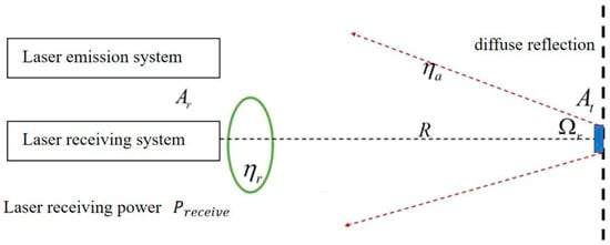where can be expressed by solid angle, is in accordance with diffuse reflection, solid angle takes or , and in this paper, is taken. Then, the laser pulse power received by the receiving system can be expressed as: