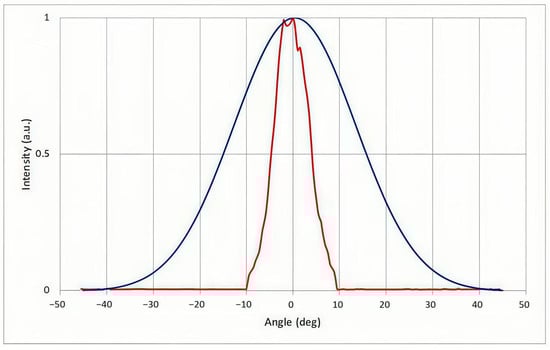Figure 5 shows the normalized optical energy distribution of the laser. The red and blue curves represent the energy distribution of the light source in different directions. The red curve is the x-direction spot size of 10 µm, and the blue curve is the y-direction spot size of 50 µm.