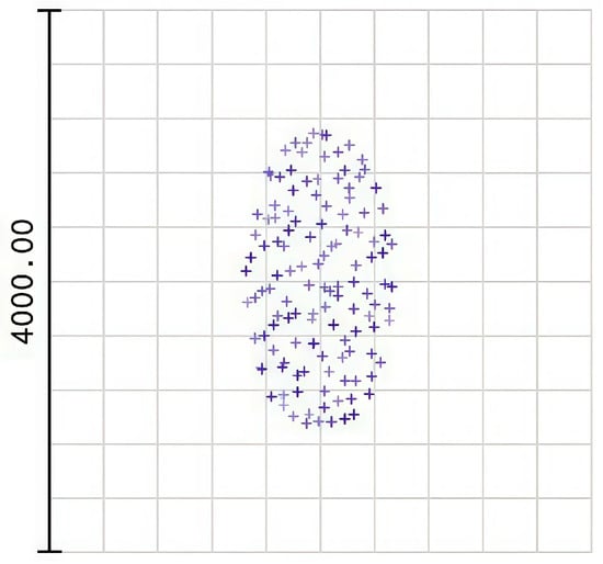 Here, we use a laser source with a wavelength of 905 nm, emitted light length of 50 µm, width of 10 µm, and divergence angles of 33° and 15°, respectively. Figure 8 shows the shape of the outgoing spot. The design requirement is to change an oval spot into a circular spot with symmetrical long and short axes after the lens collimation. Figure 9 shows the spot diagrams at different distances from the lens using the single asymmetric aspherical lens scheme above.