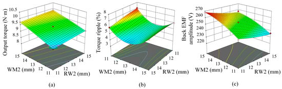 Response-surface model: (a) output torque; (b) torque ripple; and (c) back EMF amplitude.