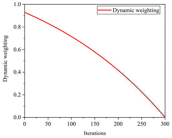 In Figure 10, it can be seen that, in the pre-search phase of the algorithm, the dynamic weight is high, and the follower performs a global search using Equation (9). As the number of iterations increases, the value of dynamic weight becomes smaller, and the follower performs local exploitation. It is concluded that dynamic adaptive weighting improves the algorithm’s global search and local development capabilities.