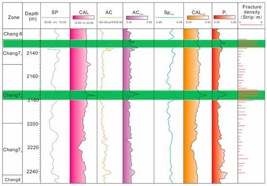 The primary challenge in identifying fractures using a single conventional logging lies in the inherent limitations of fracture interpretation accuracy [15,32,33]. Since outliers on a logging curve arise from multiple interacting factors, fracture interpretation is intrinsically ambiguous [17,19]. Consequently, relying on a single conventional logging curve for fracture interpretation is challenging; thus, integrating multiple logging curves is essential [15,34]. A comprehensive fracture analysis was conducted by integrating multiple conventional logging curves: