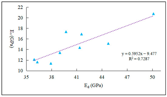where Es is the static Young’s modulus, GPa; Ed is the dynamic Young’s modulus, GPa.