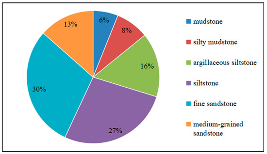 The commonly used methods for calculating the brittleness index include the rock mineral composition method and the mechanical parameter evaluation method [44]. The rock mineral composition method assesses the brittleness index based on the content of brittle minerals in rocks. Commonly used brittle minerals include quartz and feldspar, which are evaluated based on their percentages of the total mineral content: