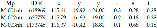 ) can be expressed using the coordinates of the element in which it is located, according to Equation (1), as follows: