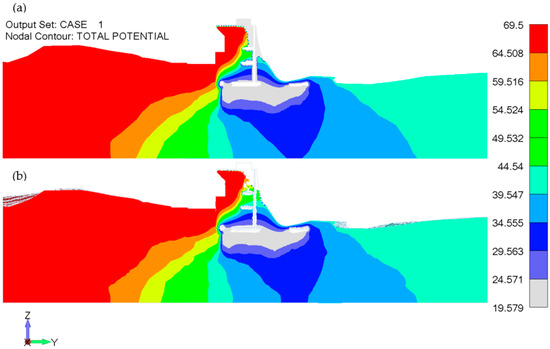 Figure 12a. The calculation of the groundwater flow was performed in stationary, which means that in practice, if commercial software was used, it would be necessary to create a new input file with every change in the water level.