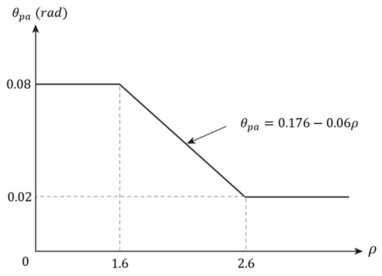 The plastic deformation capacity of a link depends on its length ratio. The deformation capacity of short links is superior to that of long links. This phenomenon occurs because shear yielding occurs uniformly along the entire length of the member across the web section. By contrast, in the case of flexural yielding, plastic deformation is concentrated in the flanges at the ends of the member, which may lead to early local buckling. Accordingly, AISC 341 [1] specifies the permissible plastic rotation angle () in relation to the link length ratio, as shown in Figure 6. The link plastic rotation in EBFs () can be obtained from the plastic story drift of the frame () in accordance with the simple plasticity theory (see Figure 7), as follows: