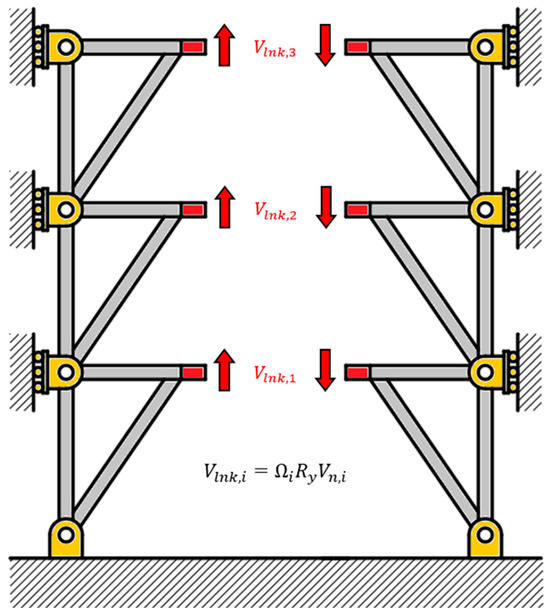 where is the shear force acting at the ends of the link (on the ith story), is the material overstrength factor, and is the nominal link shear strength (on the ith story).