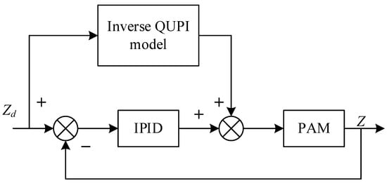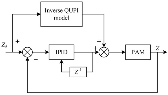 The output value of the PAM is influenced by the previous output value, so iterative learning is added to the incremental PID algorithm. The combination of QUPI inverse model feedforward control with incremental PID-type iterative learning feedback control is defined as Control Method 2. This approach fully leverages the fast response characteristics of feedforward control and the error correction capability of iterative learning, forming an efficient control method that can both respond quickly and optimize gradually. By using error information during each iteration of system operation, iterative learning control can continuously optimize the control input, enabling the system to approach the ideal control target through repeated operations. During this process, incremental PID control ensures system stability and robustness, avoiding issues such as integral saturation, which can occur with traditional PID control. Particularly when facing large disturbances or load variations, an incremental PID can rapidly adjust the system output, maintaining overall system stability. The key advantage of this composite control strategy lies in its combination of fast response and error correction capabilities, allowing the system not only to quickly reach the desired target but also to continuously optimize control performance during operation. Especially in PAM applications, this method effectively addresses the system’s nonlinearity and complex dynamic behavior, ensuring precise trajectory tracking and stable dynamic performance under various working conditions. The block diagram of its control system is shown in Figure 8, where Zd represents the target displacement of the PAM, and Z represents the actual displacement of the PAM.