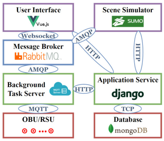 The last column of the Table 1 compares the proposed software architecture with other testing systems. Based on the characteristics of existing testing systems and our previous work, we designed a universal testing and evaluation system for V2X applications and proposed a software architecture paradigm.