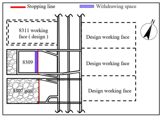It is known that the cycle weighting interval distance of the final mining of the typical fully mechanized caving face is about 26 m under similar geological conditions. Through field investigation of the typical extra-thick fully mechanized caving face, it is found that in the original final mining stopping coal caving distance, the design and construction of the withdrawal space support control have the following problems: In the actual mining process, the stopping coal caving distance is not less than 50 m, and the long-distance stop caving operation seriously wastes coal resources. The support strength is the same everywhere in the withdrawal space, and the original support control is not targeted. The key points of support control in each area of the withdrawal space are not clear, and the difference in overburden rock migration structure and support control in each area during the final mining and parking period is not considered. At the same time, the reasonable operation time of stopping coal caving has not been grasped, and it is not recognized that the fracture position of the main roof is very important for the effective support control of the withdrawal space and the safe withdrawal of the working face support. Therefore, both stopping coal caving operations in the final mining stage and rationally optimizing the stopping coal caving scheme are beneficial to the economic and efficient mining of the working face.