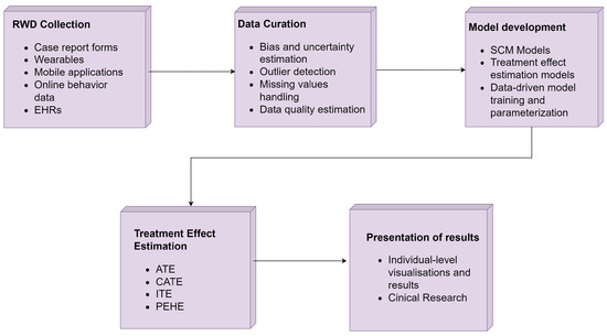 This stage may also incorporate purely data-driven ML models, which are trained for estimating the ATE and CATE, using the available collected data.