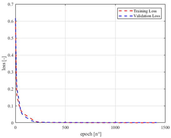 To ensure completeness, the validation loss and training loss curves of the most effective BPANN structure are illustrated in Figure 8: