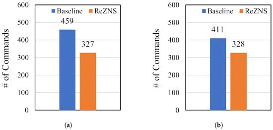 The number of zone-reset commands on Filebench. (a) Varmail; (b) Fileserver.