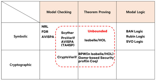 - Syverson, P.F.; van Oorschot, P.C. On unifying some cryptographic protocol logics. In Proceedings of the 1994 IEEE Computer Society Symposium on Research in Security and Privacy, Oakland, CA, USA, 16–18 May 1994; pp. 14–28. [Google Scholar]