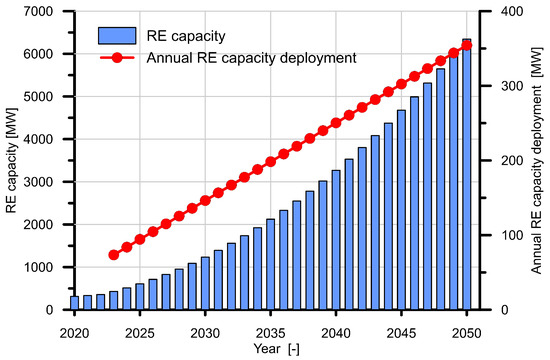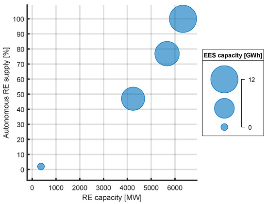 - Large-scale EES limits were set to 5.2 GWh, based on the estimations carried out by the local government [44].