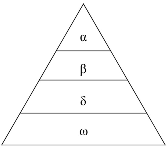The gray wolf optimization (GWO) algorithm is an optimal data processing intelligence algorithm proposed by Mirjalili et al. in 2014 and is based on simulating the hunting behavior of natural gray wolf populations. Information is accurately acquired by iteratively updating to approach the prey [13]. As shown in Figure 3, the leadership hierarchy of the gray wolf population can be divided into , with leadership power , which correspond to optimal, suboptimal, third-optimal, and other solutions, respectively. direct to continuously chase, drive, approach, and harass the prey, which causes them to stop moving and thus achieve a precise attack.