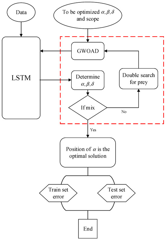 GWOAD-LSTM Workflow. (The red box shows the improved GWOAD parameter optimization process).
