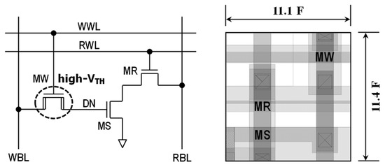 - Chun, K.C.; Jain, P.; Lee, J.H.; Kim, C.H. A 3T gain cell embedded DRAM utilizing preferential boosting for high density and low power on-die caches. IEEE J. Solid-State Circuits 2011, 46, 1495–1505. [Google Scholar] [CrossRef]