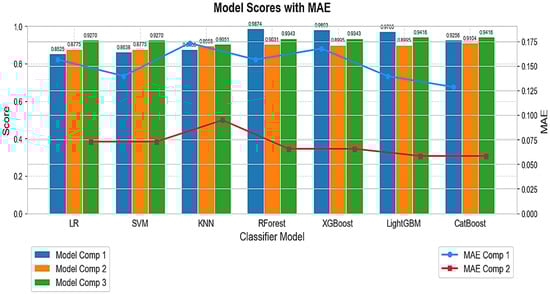 Figure 11 presents a comparison of model performance across three different configurations, with accuracy visualized by the three ‘Model Comps’ and mean absolute error (MAE) represented by two ‘MAE Comps’.