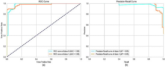 Evaluation of the final optimized ensemble model resulted in the following indices: AUC (Area Under the Curve) of 0.98 and AP (Average Precision) of 0.98, as shown in Figure 14. These indices confirm that the ensemble model provides not only high accuracy but also excellent precision and recall, making it highly effective for classification tasks.