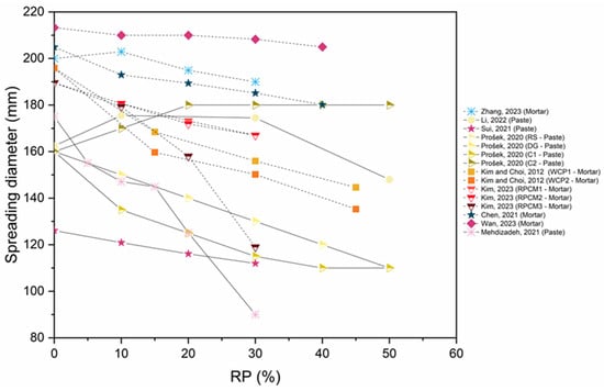 The potential of recycling and converting CDW into RP for use as a partial replacement for cement in cement-based materials is highly promising. The efficient utilization of RP has the potential to substitute a portion of cement, address the difficulties associated with CDW disposal, diminish the carbon emissions of the concrete sector, and preserve natural resources. It aligns with the criteria of the cement sustainability plan and offers significant economic and environmental advantages [,,,,,,,,,,,].