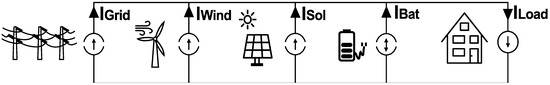 - Mechnane, F.; Drid, S.; Nait-Said, N.; Chrifi-Alaoui, L. Robust Current Control of a Small-Scale Wind–Photovoltaic Hybrid System Based on the Multiport DC Converter. Appl. Sci. 2023, 13, 7047. [Google Scholar] [CrossRef]