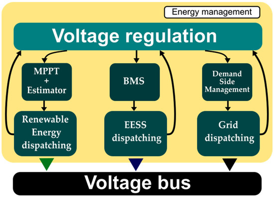 - Padilla-Medina, A.; Perez-Pinal, F.; Jimenez-Garibay, A.; Vazquez-Lopez, A.; Martinez-Nolasco, J. Design and Implementation of an Energy-Management System for a Grid-Connected Residential DC Microgrid. Energies 2020, 13, 4074. [Google Scholar] [CrossRef]