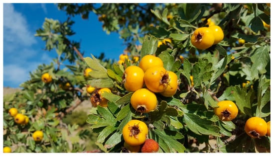 - Öztürk, F.S.; Gökbulut, İ.; Hayaloğlu, A.A. Evaluation of physicochemical characteristics, antioxidant activity and phenolic profile of Crataegus species in Malatya, Turkey. Emir. J. Food Agric. 2023, 35, 78–85. [Google Scholar] [CrossRef]