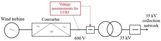 The LVRT characteristic is set by the wind turbine manufacturer in the inverter. A simplified single-line diagram of a type IV wind turbine is shown in Figure 1 explains the principle of implementing the LVRT characteristic.