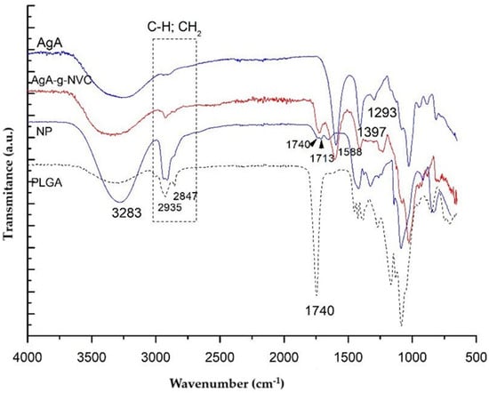2.3. Preparation of PLGA-Coated Alginate Grafted with pNVCL