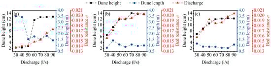 The experimental data were used to determine the average lengths and heights of the dunes under the different slopes, and these were analyzed alongside corresponding the bed resistance measurements, as illustrated in Figure 10.