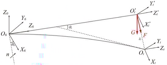 End-effector deformation error schematic diagram. represents the theoretical position of the end-effector coordinates, while represents the actual position of the end-effector coordinates, taking deformation into account.