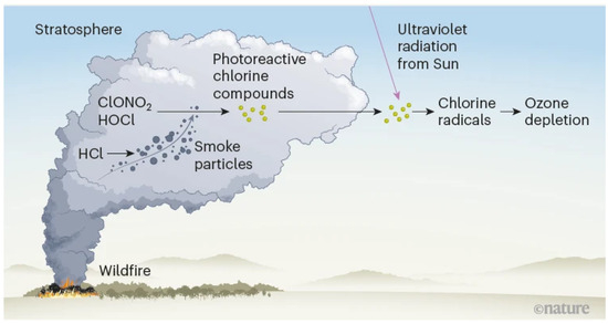 36] modeled the effect of bushfire emission on the near-surface concentrations of ozone. In our study, we focus only on the effect on total column ozone (i.e., ozone within a column of air from the Earth’s surface to the top of the atmosphere).