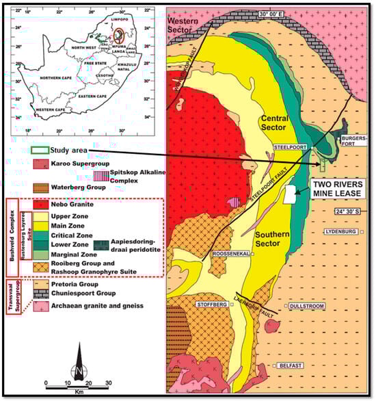 - Kinnaird, J.A.; Hutchinson, D.; Schurmann, L.; Nex, P.; De Lange, R. Petrology and Mineralisation of the Southern Platreef: Northern Limb of the Bushveld Complex, South Africa. Miner. Depos. 2005, 40, 576–597. [Google Scholar] [CrossRef]