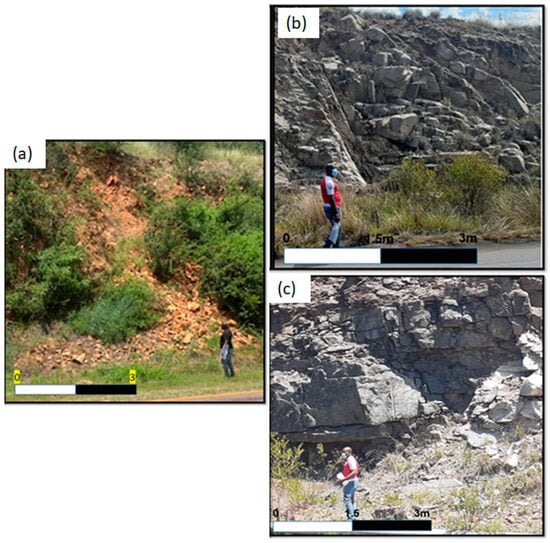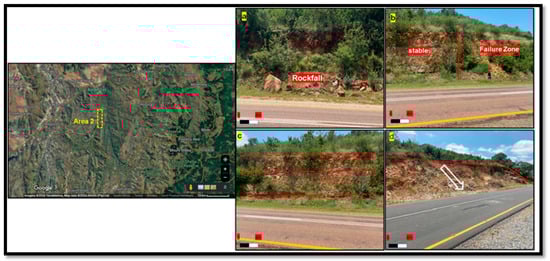 An increase in infrastructural development has resulted in several road projects being built on rugged terrains, creating and exposing the geology and geometry of the engineered slopes [1]. Studies indicate that the cut slopes expose the orientation of the slope material (rock or soil), which can be key to the understanding of the overall slope stability or instability susceptibility [2,3,4]. In supporting the previous statement, ref. [5] has envisaged that exposed rock strata that dip away from the slope face are susceptible to a toppling mode of failure. Similarly, another study has highlighted that rock strata that plunge towards the slope face are prone to translational failure [6]. Nonetheless, structural elements such as folds, faults, and other geological discontinuities regulate the behaviour of the rock mass and help to either stabilise or destabilise rock slopes based on their orientation and the degree of tectonic damage (deformation) [7].