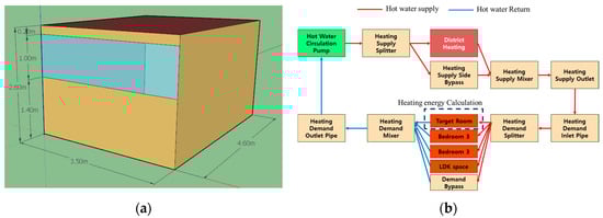 As depicted in Figure 2, the physical properties and composition of the building, including the thickness, length, and structure of exterior walls, windows, and floors, were generated based on architectural drawings and building equipment documentation to construct a suitable heating control simulator for the occupancy environment. The results are summarized in Table 1.