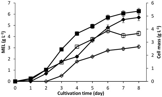 ), and, for one-time addition of substrate, MEL titer g L−1 (