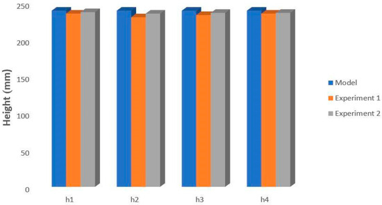 The model was reprinted using this method to conduct a more detailed examination and re-evaluation. An analysis of the heights of the produced components confirmed the precision of this method in component fabrication. The data collected for several points in this model are presented in Figure 14 and Table 3. As a second example illustrating the effectiveness of this method, a polishing process lasting nearly one hour was employed to produce a final usable component. Figure 15 shows the height values for the considered points of the obtained model and the first and second experimental tests.