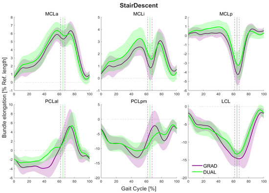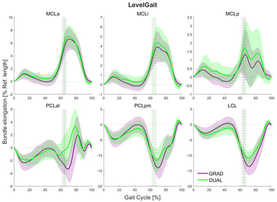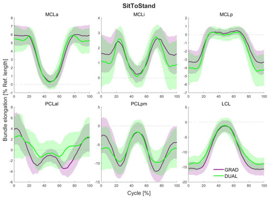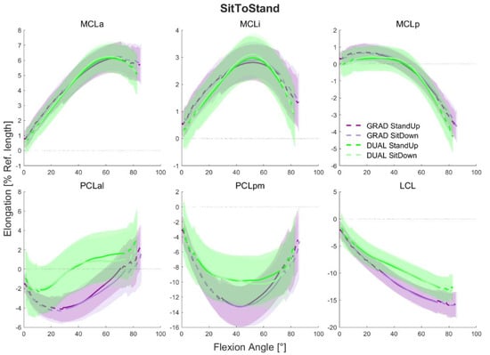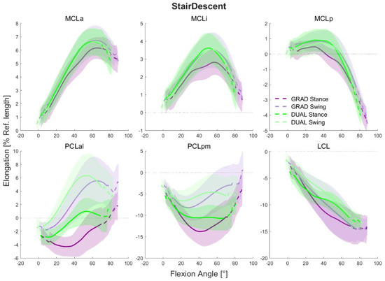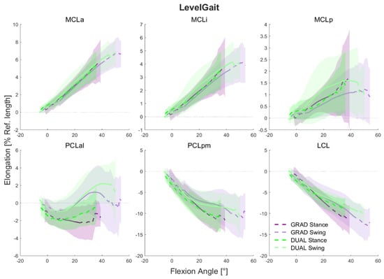 - Hosseini Nasab, S.H.; Smith, C.R.; Postolka, B.; Schutz, P.; List, R.; Taylor, W.R. In Vivo Elongation Patterns of the Collateral Ligaments in Healthy Knees During Functional Activities. J. Bone Joint Surg. Am. 2021, 103, 1620–1627. [Google Scholar] [CrossRef]