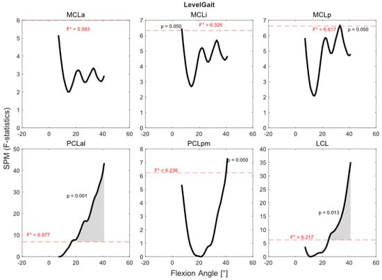 - Blankevoort, L.; Huiskes, R.; de Lange, A. Recruitment of Knee Joint Ligaments. J. Biomech. Eng. 1991, 113, 94–103. [Google Scholar] [CrossRef]