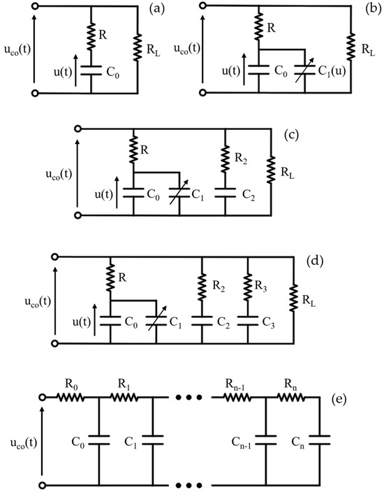 The short-term branch, as depicted in Figure 1b, comprises a resistor, R, of a constant value, connected in series with a capacitance that varies linearly with the internal voltage, u, according to the following expression: