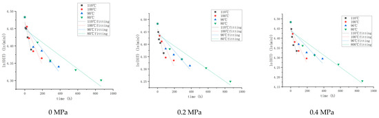 Let X = t, Y = lnF, a = lnAF0, and b = −K; then, Equation (2) can be changed into a linear equation.