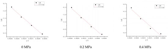 According to the fitting results of ln(OIT), the reaction rate constant K obtained under different conditions is shown in Table 4.