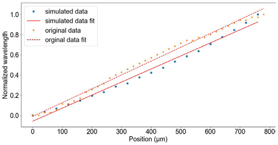Moreover, the wavelengths are normalized because the detected peak wavelength does not match the one in the real data, which is due to the coatings of the lenses, which will strongly affect the transmitted intensity of each wavelength and, therefore, the detected wavelength peak, and it is not considered in the simulation.