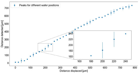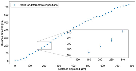 Lastly, we only aimed at the region where the biggest sensitivity had been achieved experimentally. Furthermore, the motive of this work was to measure the thickness of a silicon wafer from a long distance. The thickness of a single wafer is around 775 µm, which is the reason for the small range of 800 µm being used inside the working range.