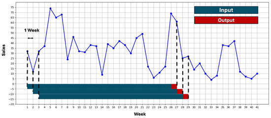 Based on preliminary tests performed to create the datasets, we chose 26 weeks for the input datasets and 1 week for the output datasets. In this sense, we created the datasets for each instance and variable, as shown in